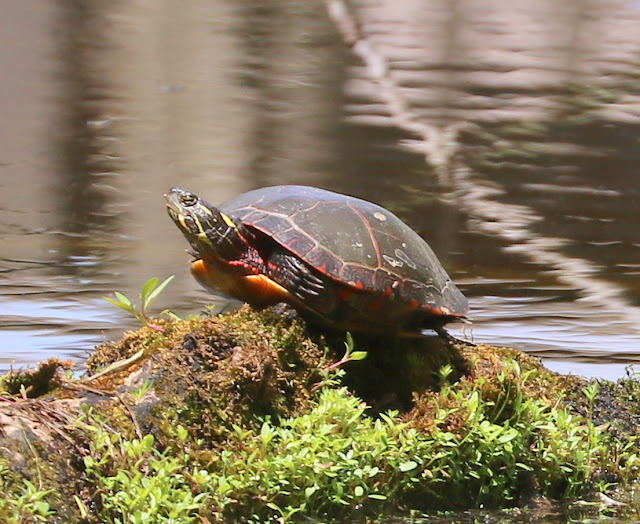 We also got lovely views of a Great Crested Flycatcher and Tanagers and Orioles. We did see a Prothonotary Warbler but sadly did not find a Cerulean during our limited time in the park. We did however see Eastern Painted Turtles and the rare and endangered Blanding's Turtle that many in our group were hoping to see! They are unique with yellow under their chins and long throats and belly. The one we saw was quite large and can live over 70 years!
